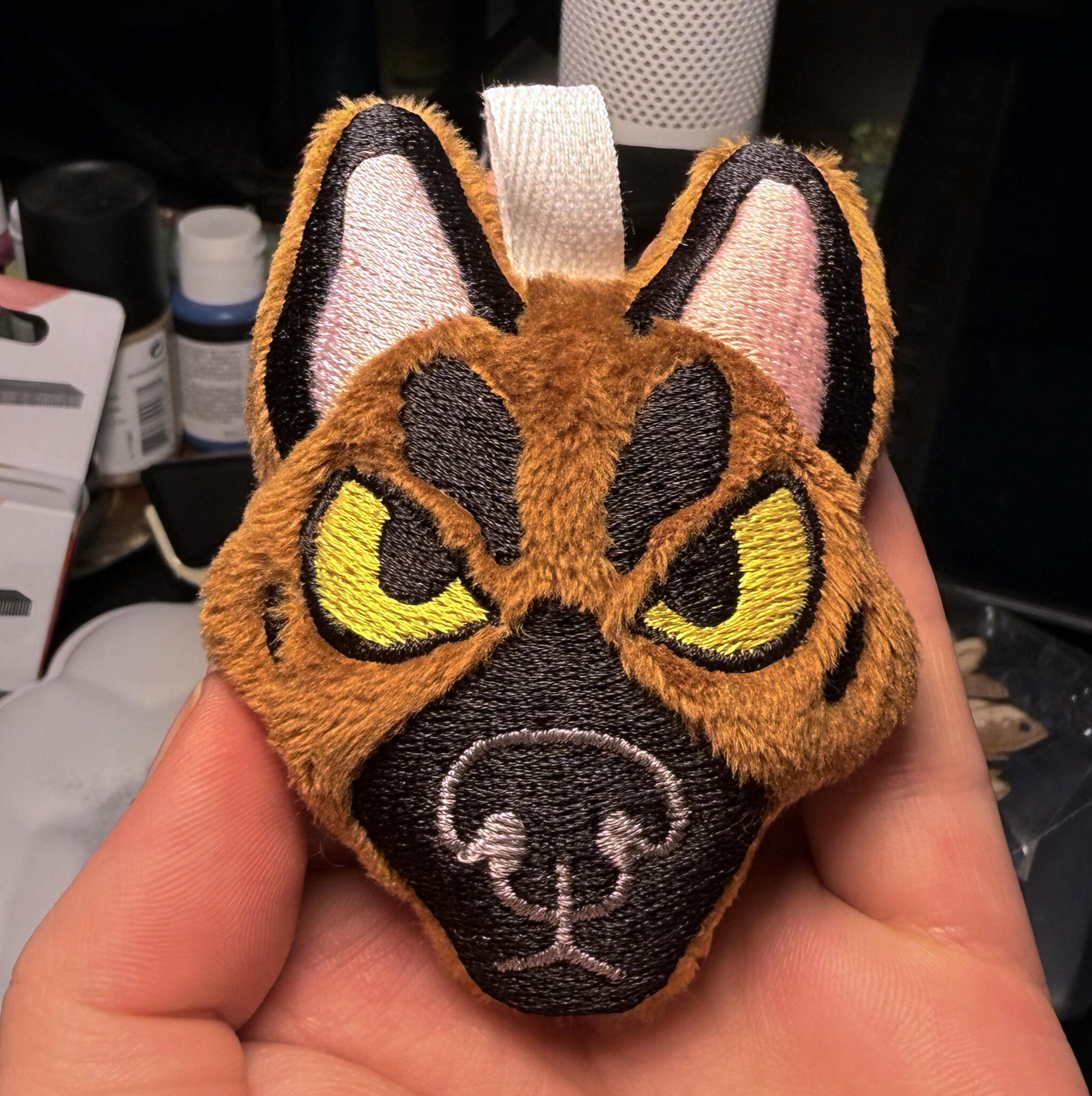 Embroidered patches, plushie keychains & jet tags.