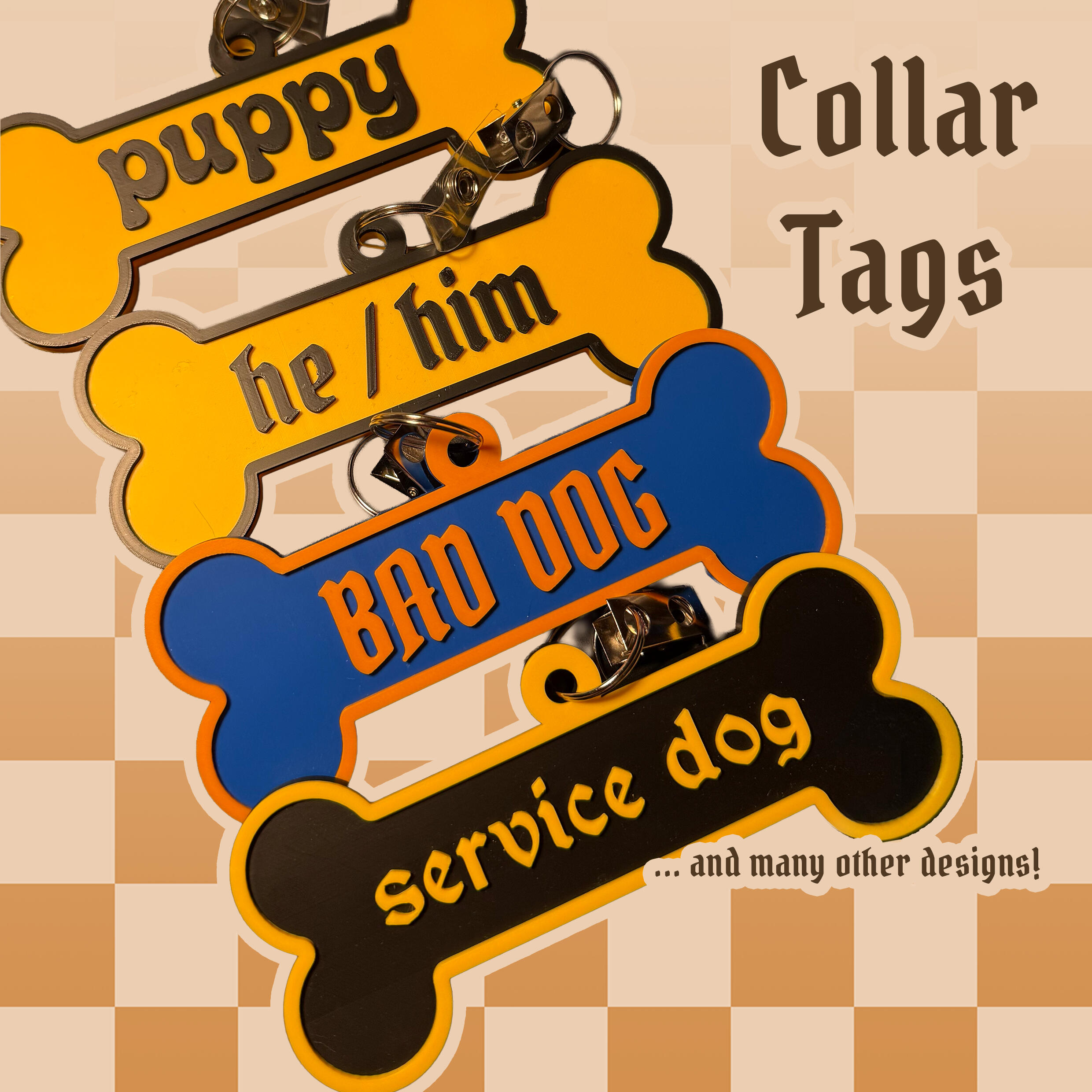 ✸ 3D printed collar tags,